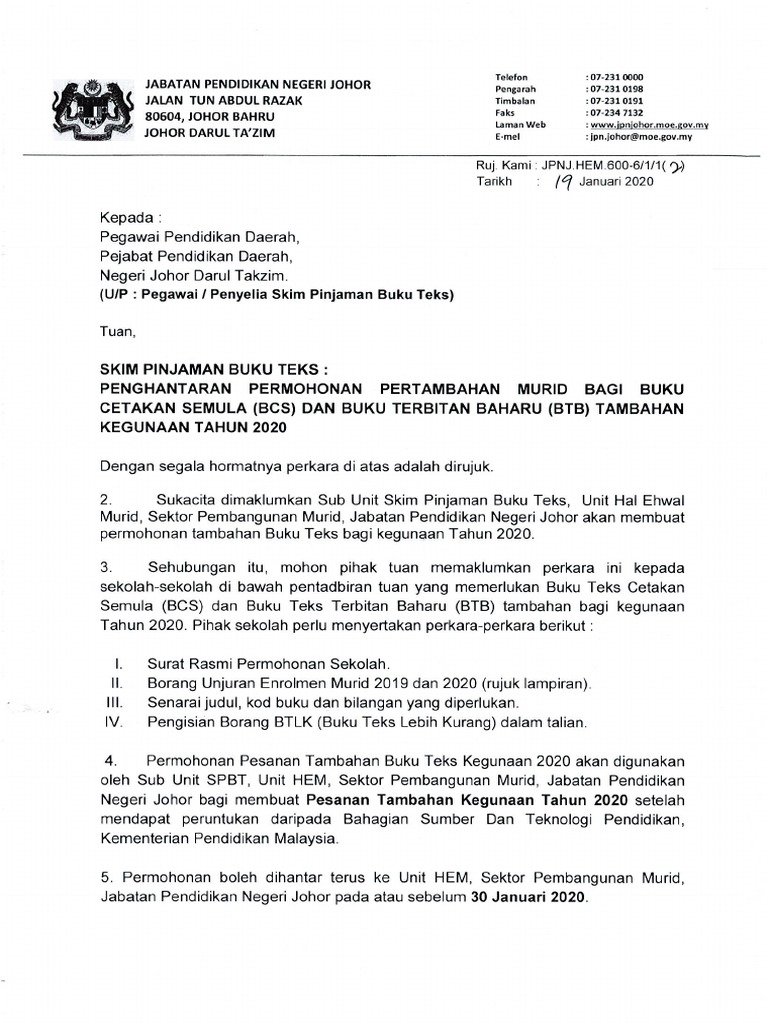5 Contoh Surat Penambahan Pengurangan Enrolmen Murid Pdf